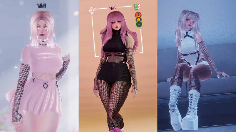 - Shorts (Darcy.fbx) & Skirt, Top and Necklace (Petty) & Bodysuit, Hoodie and Harness (Zinpia) & Fishnets (Zinpia)